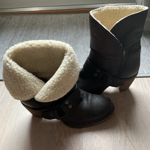 Bianco Vinterstøvler i størrelse 37. Støvlene er laget av svart skinn og er designet for vinterbruk. De har glidelås på innsiden for enkel på- og avkledning. Liten slitasje på skotuppen ikke tykt for’ inni. 350kr