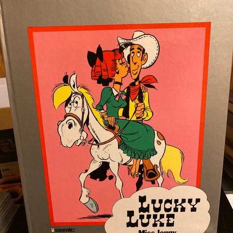 Samling av Tintin og Lucky Luke tegneserier inkludert flere bind med varierte farger på omslagene. Serien inneholder også flere Sprint og Viggo bind med forskjellige illustrasjoner på forsiden. Passer for samlere og lesere av klassiske europeiske tegneserier.