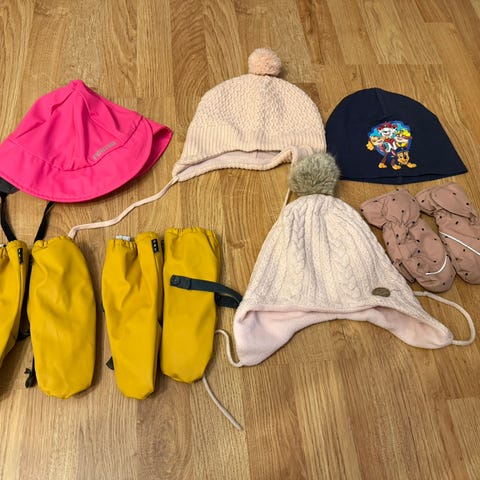 Sett av 4 votter og lue med refleks. Omtrent for et barn fra 3 til 6 år.