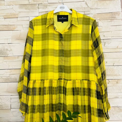 Selger en eksklusiv kjole i 100 % silke i str. 38 fra Designers Remix Collection BY Charlotte Eskildsen. Kjolen er ermeløs med “løs” krage som faller naturlig. Det samme gjelder de to lommene i front. Fargen er bronse (mest lik på bildet på de to bildene av “vaskelappen”), men rosé-detaljer (se bildet). Glidelås bak. Svært lite brukt.