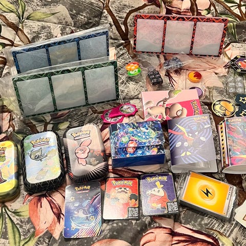 Pokémon TCG Mega Charizard x Ultra Premium Collection med samleobjekter og kortspillinnhold.
