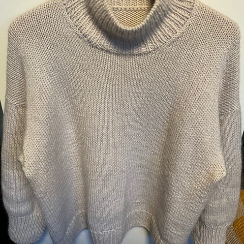 Pent brukt genser strikket etter oppskrift fra PetiteKnit. Strikket i Sunday og tynn silk mohair fra Sandnes garn. Husker ikke helt hva fargen het, men det er i samme farge som originalutgaven fra PetiteKnit.