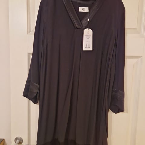 Nydelig kjole med fine detaljer og fasong, vennlig behagelig med trekvart armer.