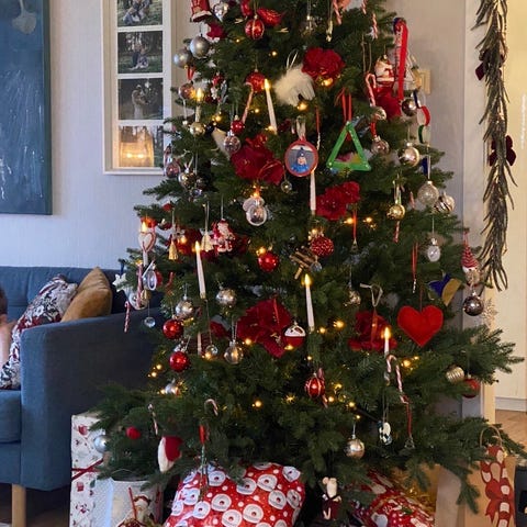 Juletre med julepynt og lys selges. Kjøpt i fjor.