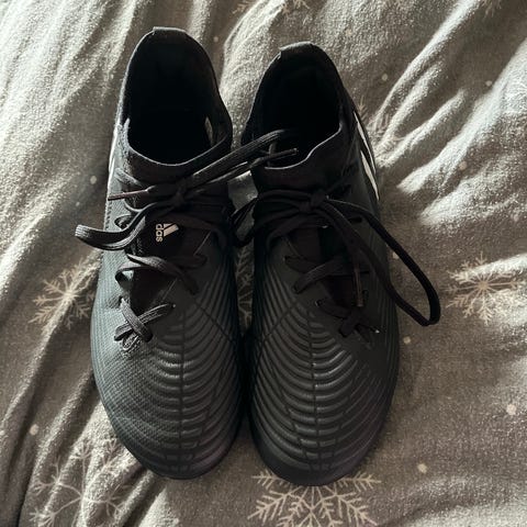Adidas Spezial fotballsko i størrelse 38 2/3 Skoene har svart overdel med hvite detaljer og gummisåle. Egnet for bruk ved fotballspill.