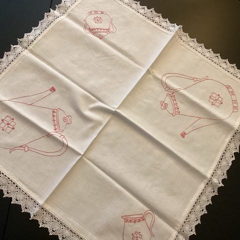 Pakke med ubrukte grytekluter, vott og sekk til julekort selges