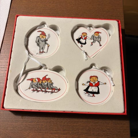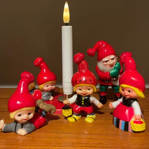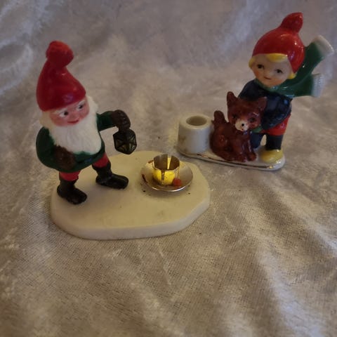 To stk Karen K nisser i plast. 8 cm høye. Hele og fine. Kan sendes mot at kjøper betaler porto på 69.-. Prisen er for begge.