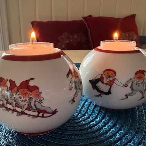 Fine med telys i eller å bruke de som blomsterpotte til eks svibler eller små blomster.