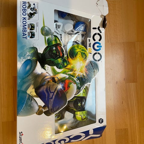 Kamproboter. Artig roboter med fjernkontroll. Kan sloss, kjøre og lager lyd. Skulder bladet kan ramle av i kamp. 360 grader rotasjon på overkropp.