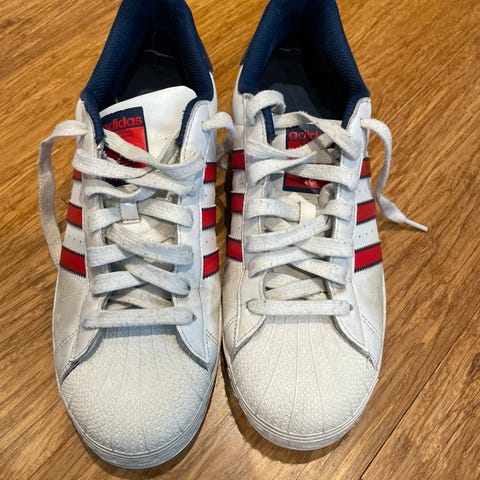 Adidas superstar strl 44 hvit og svarte striper selges.