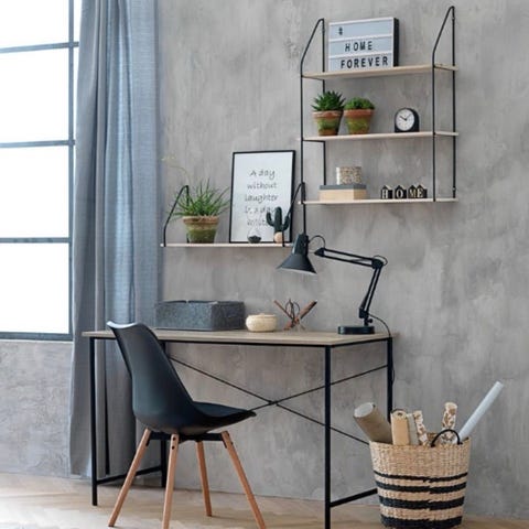 Skrivebordet er godt å bruke, da det er mye plass. Og stødig.