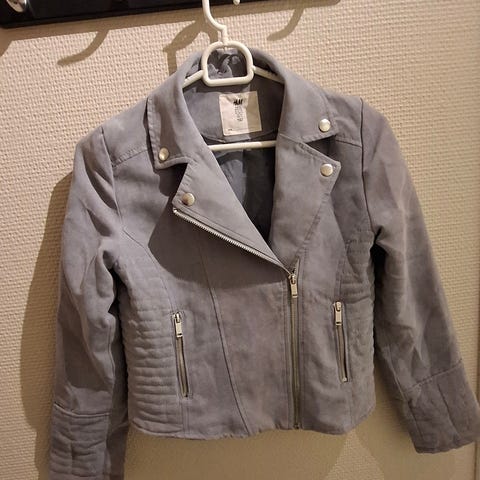 H&M Made to Move jakke i størrelse 146 for jente. Jakken er hvit og laget av polyester. Den har en enkel design med glidelås og er egnet for utendørs bruk, gjerne til sport e.l. Jakken har noen små flekker på stoffet, se bilde. Brukt av ett barn i en vintersesong.