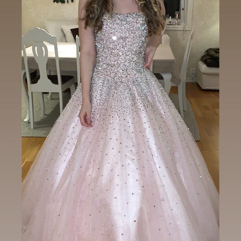 Nydelig lys rosa ballkjole selges. Brukt 1 kveld. Helt strøken. Kan passe alt fra xxs til liten medium grunnet snøring i ryggen. Kjøpt på Pandoras på Fevik for 4400kr i november 2025.