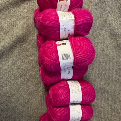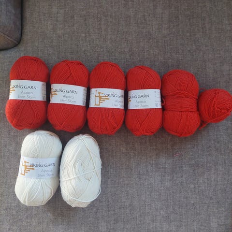 Garn på bilde : Viking alpaca bris selges for 55 kr per stk. Pus garn selge s for 65 kr per stk.