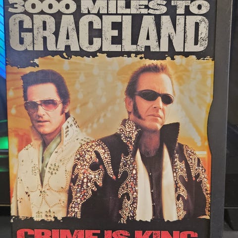 Søkeord/Tags: 3000 Miles to Graceland, Kurt Russell, Kevin Costner, Courteney Cox, Christian Slater, action, thriller, krim, Elvis, Las Vegas, samleobjekt, DVD.