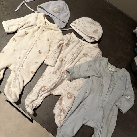 Alt du trenger første tiden til yttertøy til den nyfødte 🌸Mye kjente merkeklær og hentesett/ strikket🌸