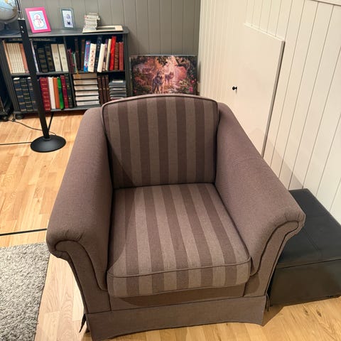 Jeg er på jakt etter en ny godstol. Ønsker vinrød stol. Den på bildet er den gamle, ønsker en som er rødere. Tønsberg området.