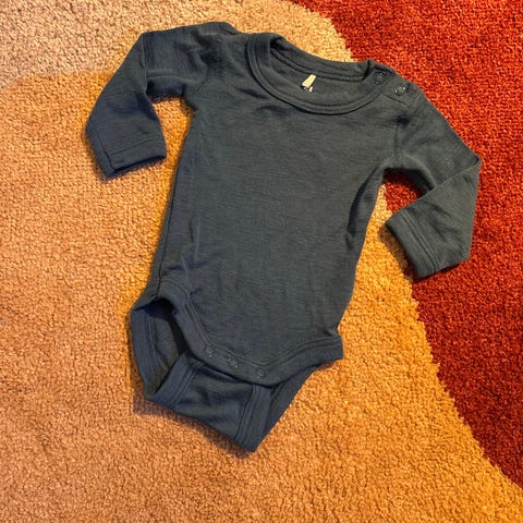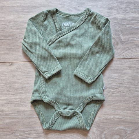 Reflex ull body i størrelse 56, grønn farge, designet for unisex barn. Laget av ullmateriale som gir varme og komfort.