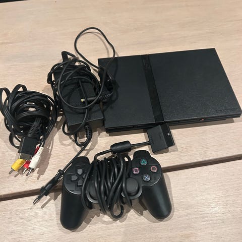 Kun PS2 og kabler (AV/scart og strøm)