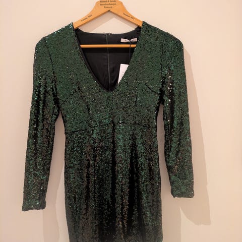 En helt nydelig kjole i rosegull paljetter fra Notes du Nord. Strl S, men passer også en M.