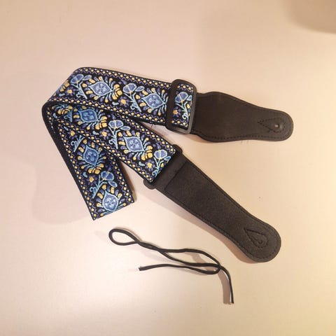 Det selges en ny og ubrukt gitarreim (81-138 cm). Det følger med en stropp for bruk med klassiske gitarer.