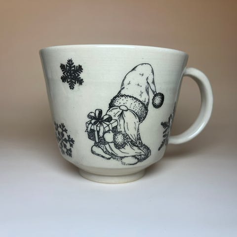 Bente Arvesen Porselensfigur Nisse med lysestake