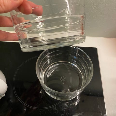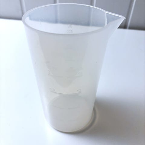 Liten melkekanne i glass med trehåndtak