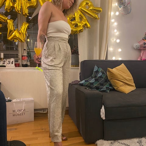 Festkjole i størrelse S med svart farge, laget av paljetter. Passer til kvinner.