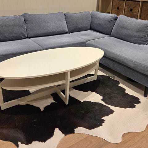 Lite brukt og meget velholdt hjørnesofa med sjeselong selges grunnet flytting og mindre plass. Ingen flekker, ikke vært dyr i den eller vært utsatt for sigarettrøyk. Mål: 300cm bredde, utstikker 225cm og sjeselong 160cm.
