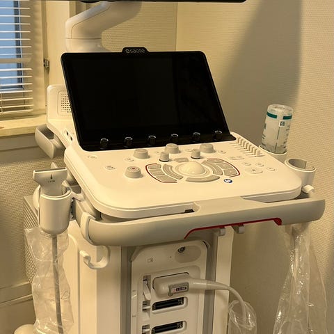 MyLab X5 fra Esaote, har hurtig oppstart på 15 sekunder og masse ny funksjonalitet. Ekstremt brukervennlig touchpanel med godt brukergrensesnitt og lettfattelige knapper og brytere. Naturligvis HDMI for tilkobling av stor ekstern skjerm på kontoret ditt og mulighet for wifi for bildedeling og printer. Leveres normalt nå med ny uovertruffen lineærprobe L15-4, med frekvens fra 15-4 MhZ. Apparatet kan eventuelt utvides med Konveksprobe, Hockestick m.v.