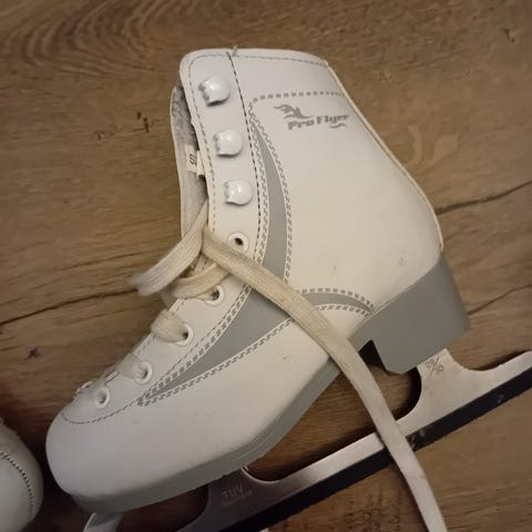 Wifa Prima Hobby kunstløp skøyter for barn i størrelse 32. Skøytene er hvite og beregnet for generell skøyting og kunstløp. Nypris 1 649 kr.