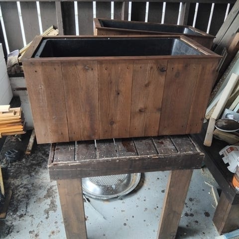 NY KRAFTIG HJEMME LAGET BLOMSTERKASSE MED PLAST BALJE INNVENDIG LAGET AV IMPREGNERT MATERIALE FERDIG BEISET KLAR TIL BRUK