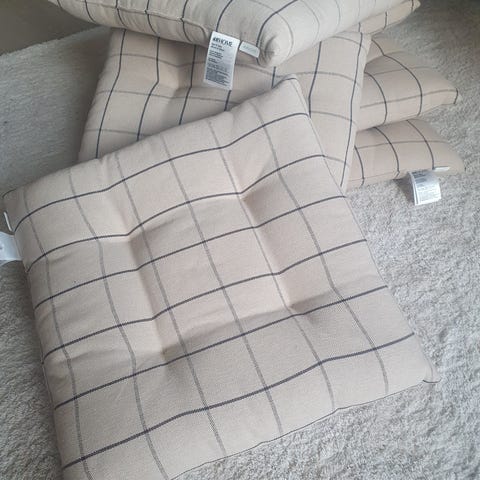 2 stk. sitteputer i skinn fra Ikea. Diameter: 36 cm. Meget pent og lite brukt. Selges 100,- pr. stk. eller samlet for 150,-