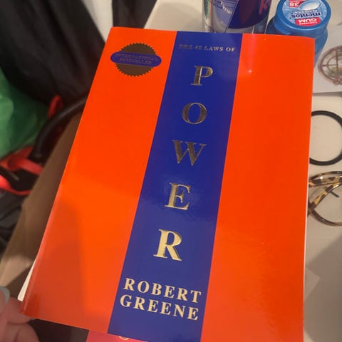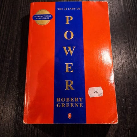 Robert Greene The 48 Laws of Power bok. Inneholder strategier og prinsipper for makt og innflytelse, skrevet på engelsk. Passer for lesere interessert i ledelse og personlig utvikling.