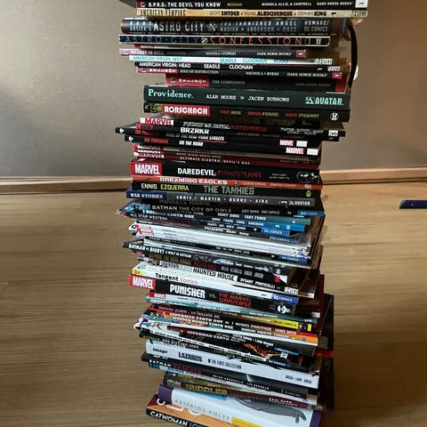 Et utvalg med 16 forskjellige tegneserier og grafiske romaner, av blant annet Bilal og Morbeus. Ta kontakt hvis enkelt hefter er av interesse.