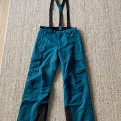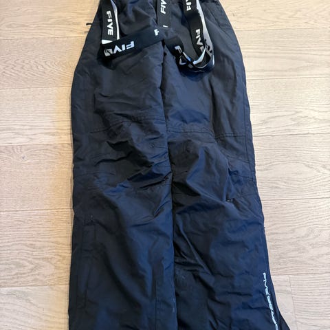 Snømansjett og glidelås slik at ingen snø kommer inn. Bukseseler og mulighet for stramming i livet.
