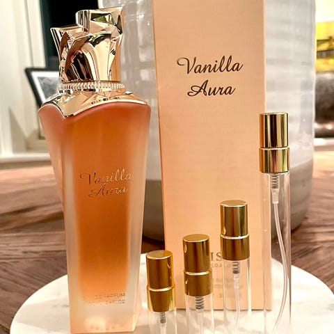 Selger Vanilla Aura fra Maison Asrar. Kun testet og nesten full. Duften sitter lenge på huden. Selges fordi jeg har en annen vaniljeparfyme som er min favoritt.