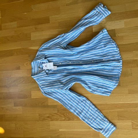 Lyseblå stripet skjorte fra H&M. Klassisk snitt, lett og behagelig stoff. Pent brukt og i god stand. Størrelse EU 34.