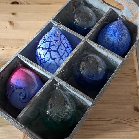 Minste 8 cm lang, 7 cm høy og 2 cm bred. Største 12 cm lang, 10 cm høy og 3 cm bred.