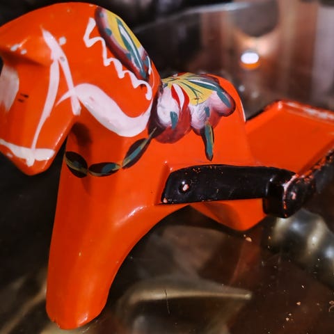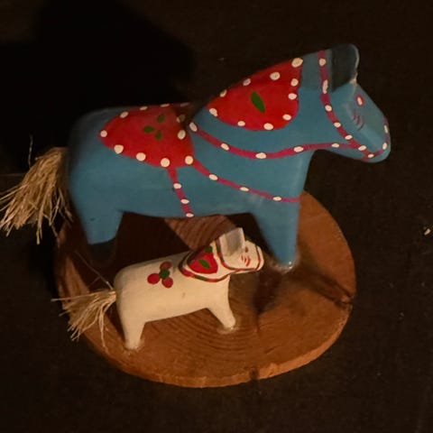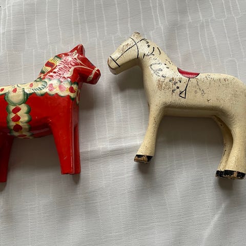 Tradisjonelle dalahest figurer av tre med abstrakt preg. Dalahest figurene har sitt opphav i Nusnäs i Mora i Dalarna i Sverige. Samtlige fire figurene er like klassisk rødmalt med forseggjort detaljert tradisjonelt fargemotiv. Består av fire hester i ulik størrelse, selges kun samlet.