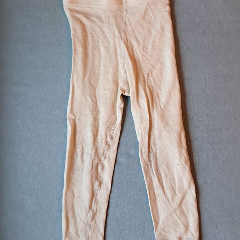 Ullstilongs med forsterkede knær, strukturmønster og blondekant på bena. Strl 98 og 116, ubrukt - kun tatt av lappen. 100kr per stk.