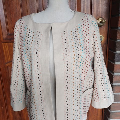 Elegant og tidløs linfrakk i lys beige, lite brukt og uten bruskskader. Står ikke størrelse i den men tror det er en herre M, eventuelt en L til kvinner.