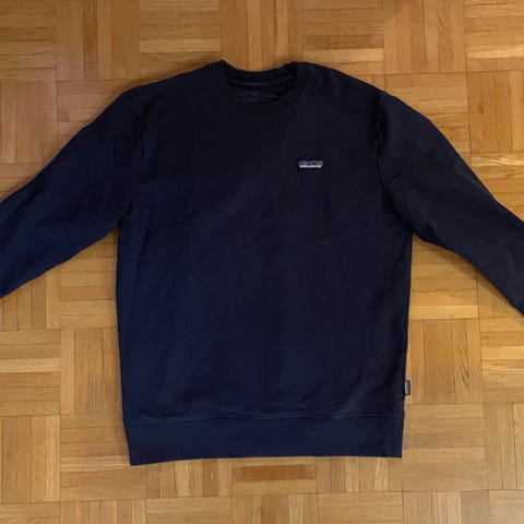 Patagonia genser i størrelse M for herre, farge blå. Laget av bomull. Genseren har hette og frontlomme. Nypris 1600.