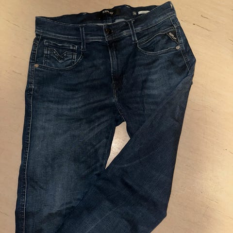 Replay jeans i blå farge laget av bomull. Størrelse W31 og herremodell i størrelse M.