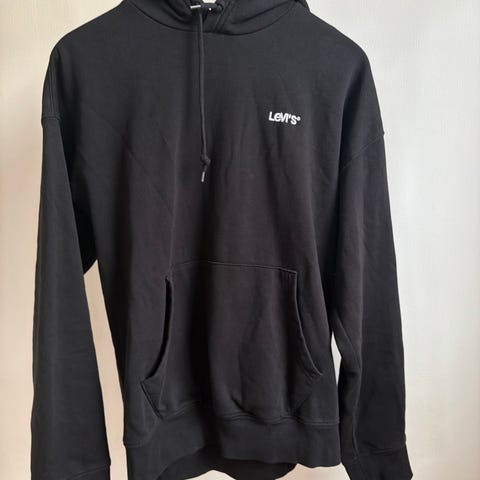 Levi's Relaxed hettegenser i størrelse S for menn. Genseren er svart og laget av bomull. Den har hette og frontlomme, designet for komfort og avslappet passform.