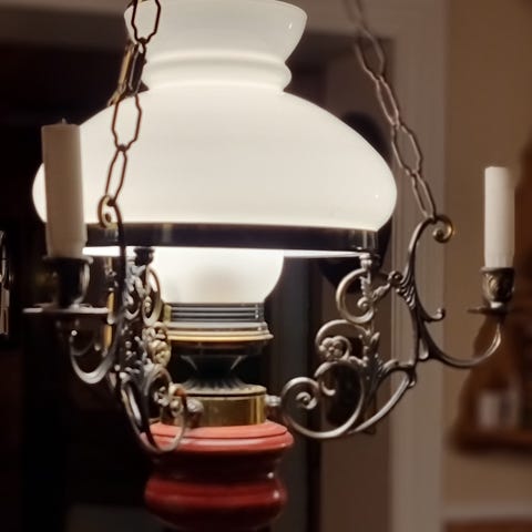 Elektrisk lampe med nostalgisk utseende selges. Lampa er i god stand.