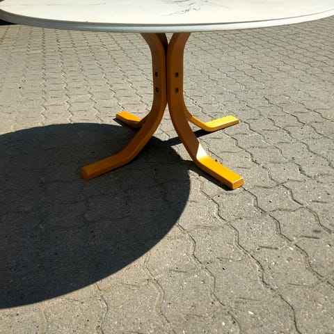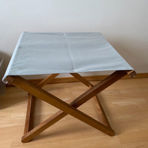 Slitt i skinnet, selges derfor billig. Lav i sittedelen, blitt brukt som pynt hjemme hos oss. Selges pga flytting