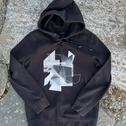 H&M Hoodie i brun farge, størrelse XS for herre. Laget av bomullsmateriale. Modellen har hette og en avslappet passform.