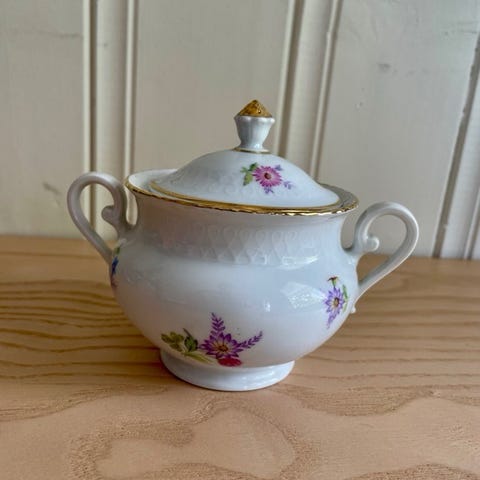 Royal Copenhagen lokk i porselen med flettet design og blå blomstermotiv. Passer til passende beholdere fra samme merke. Dekorativt og funksjonelt tilbehør. Målet på indre ringen er 7,5 cm i diameter og ytre ringen er 9,5 i diameter. Lokket er aldri brukt.
