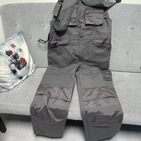 Lite brukt Helly Hansen arbeidsbukse med håndverkerlommer og lommer til knebeskyttere selges. Størrelse c56
